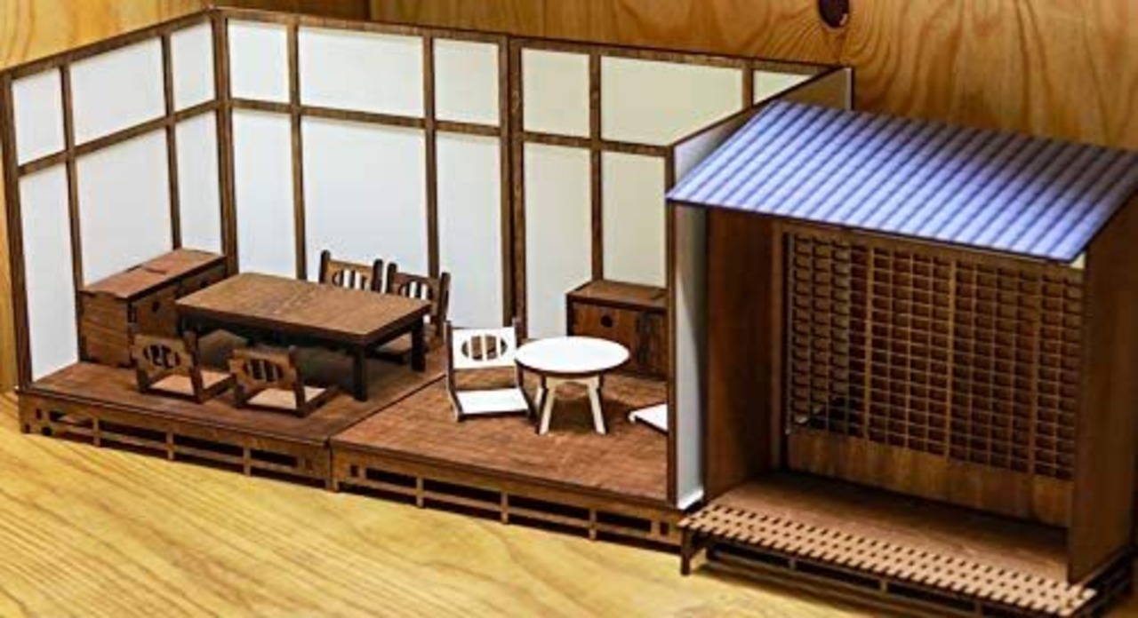 1/10スケールドールハウス 縁側と連結和室左右3点セット 家具付き