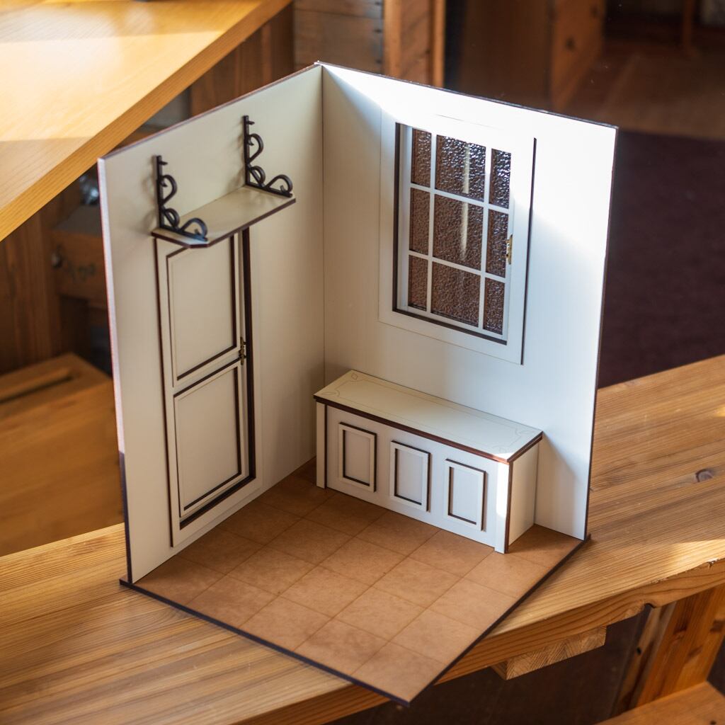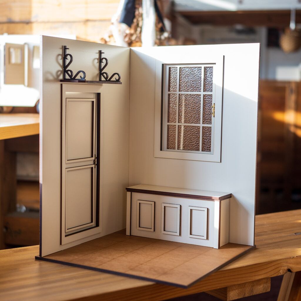 「1/6スケールドールハウス ライトブラウン床 ドアと窓の部屋」