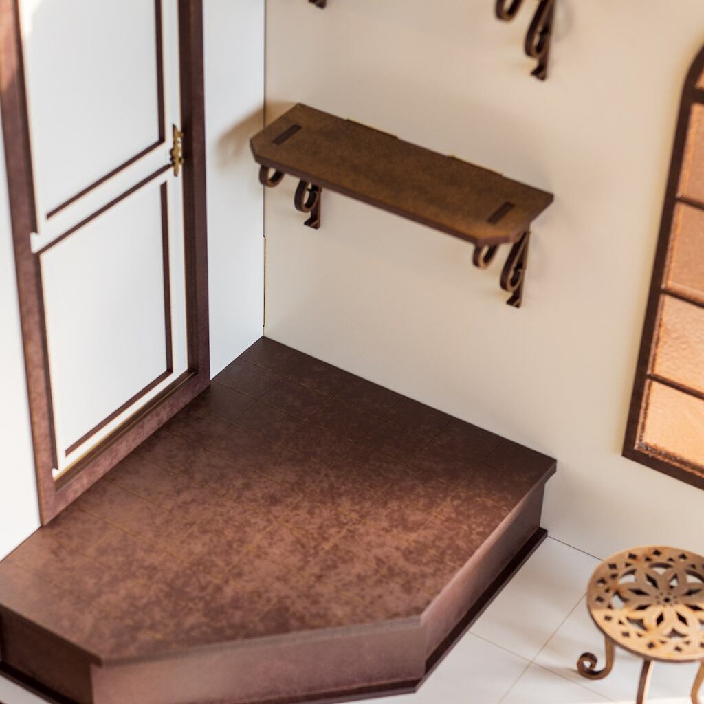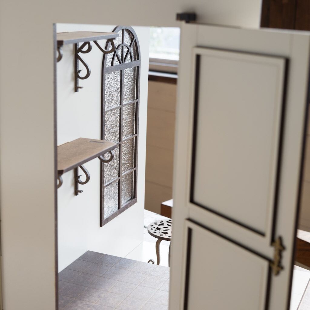 「1/6スケールドールハウス洋館玄関ドア、シェルフ、窓」